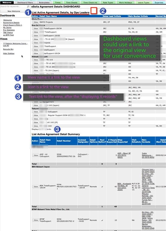 Rick Cogley 11/5/2012 4:07:13 PM Thanks for the support Brett. I love the dashboards, because of the ability to group various information sets, but sometimes you need to let people click through since there are no links such as Print, Export or Send, on each represented view.